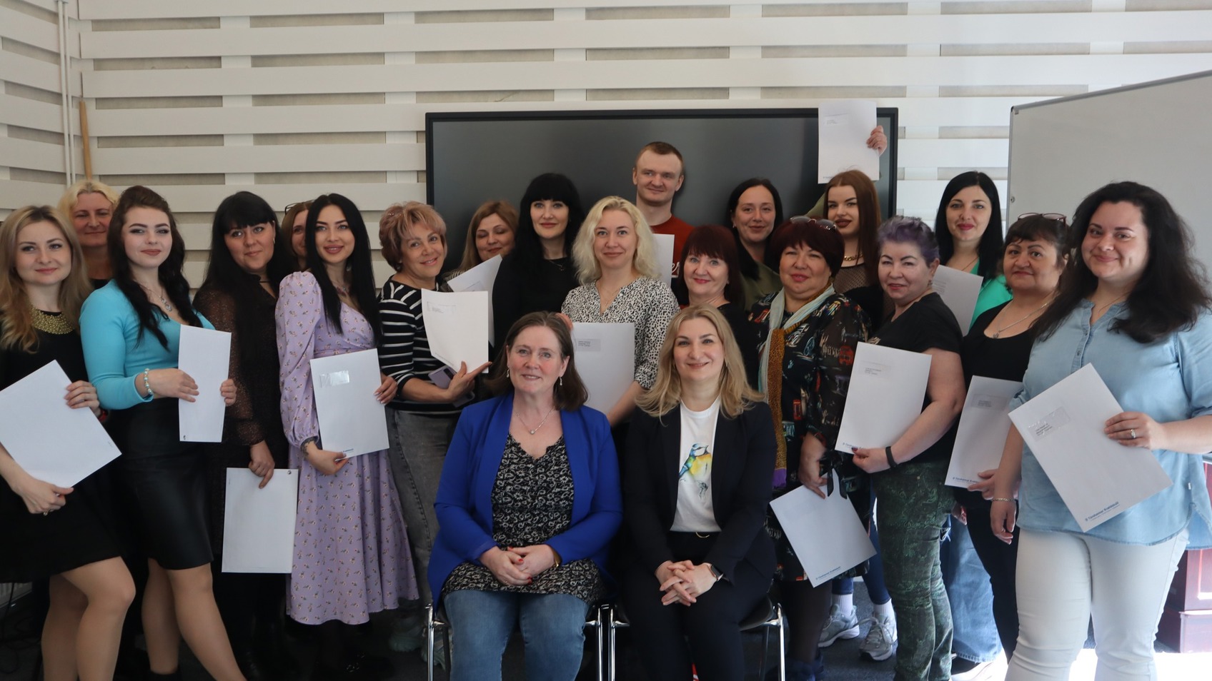 Tað var hátíðardámur á kvøldskúlanum fyrrapartin, tá ið 20 næmingar úr Ukraina fingu handað prógv.